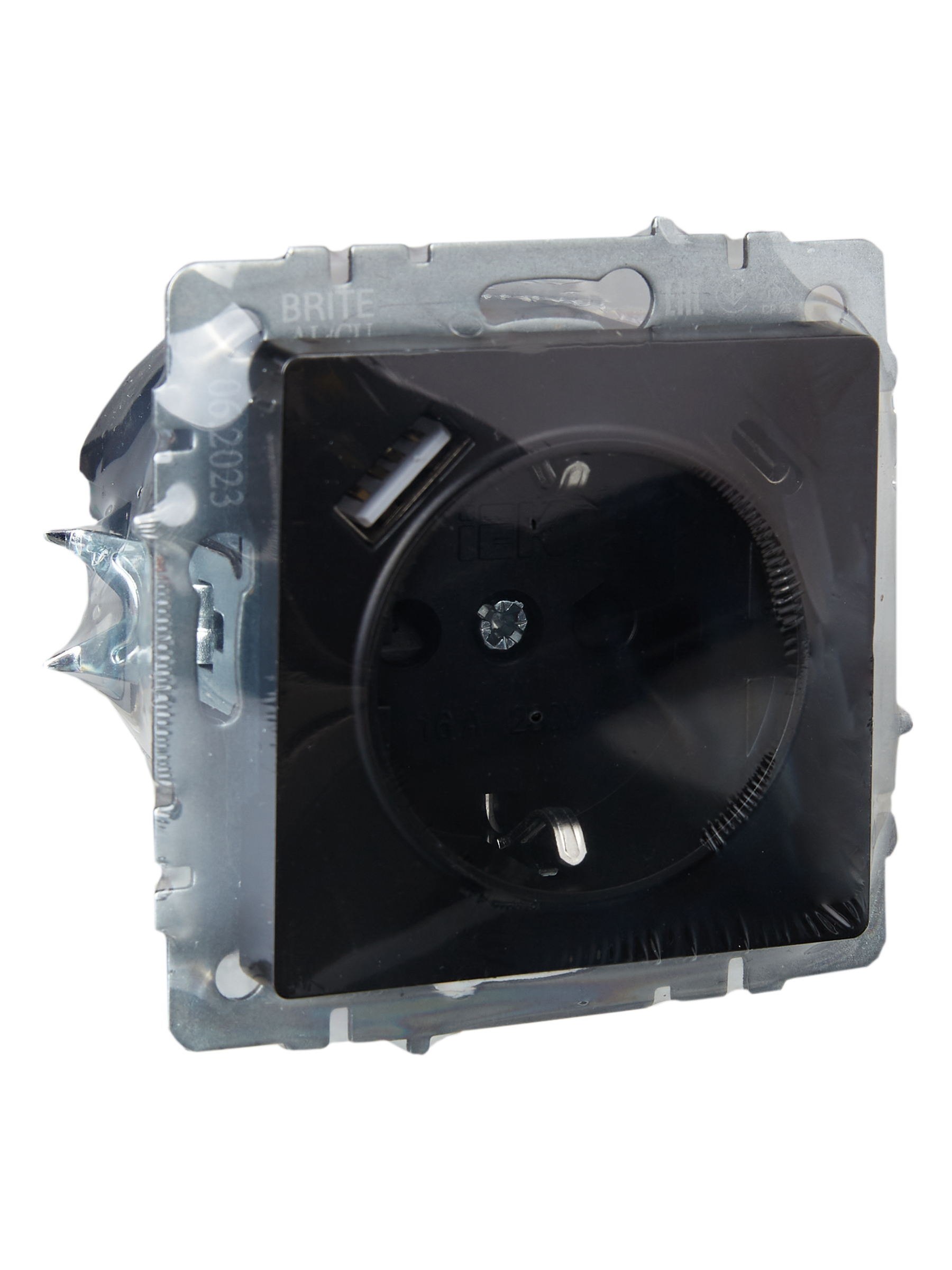 BRITE Розетка 1-местная с заземлением с защитными шторками 16А с USB A+C 18Вт РЮш11-1-БрЧ черный IEK