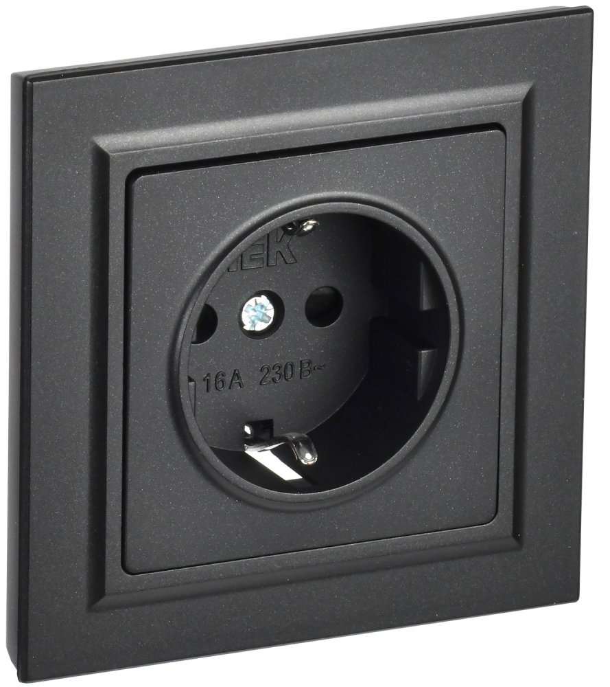 BRITE Розетка 1-местная с заземлением с защитными шторками 16А в сборе РСР14-1-0-БрЧ черный IEK