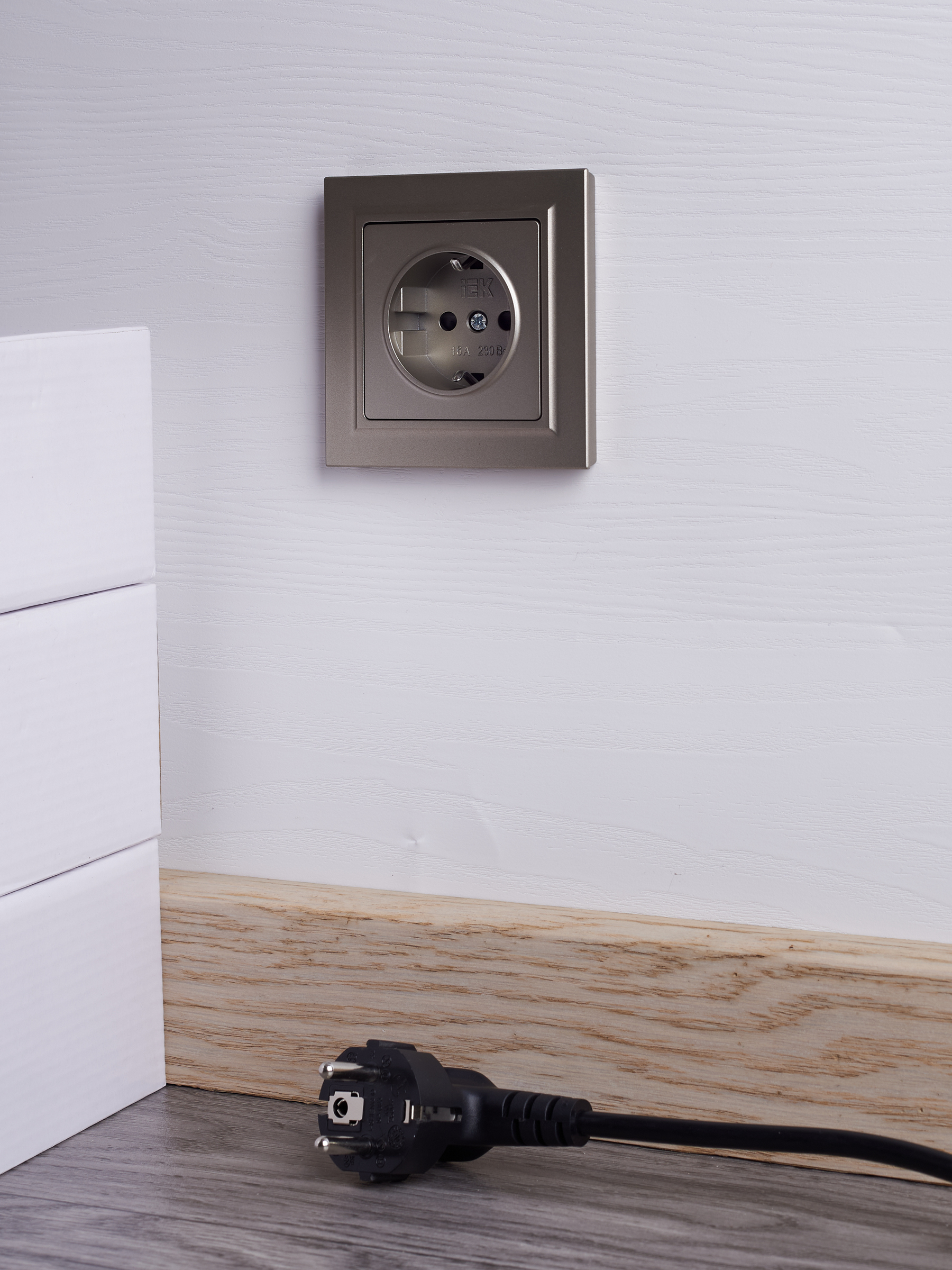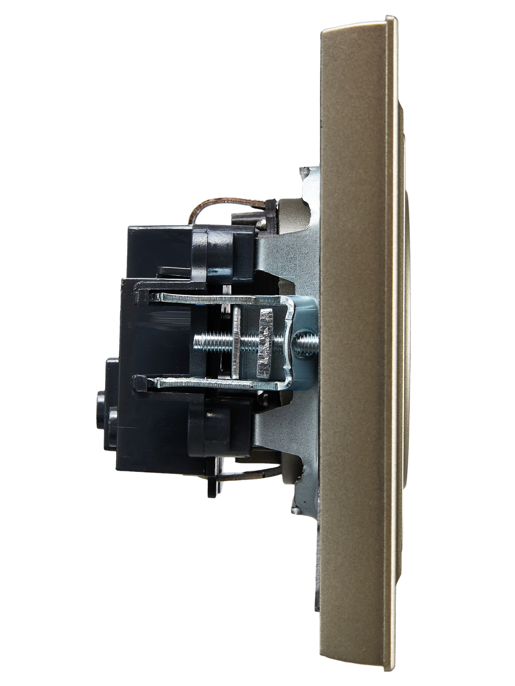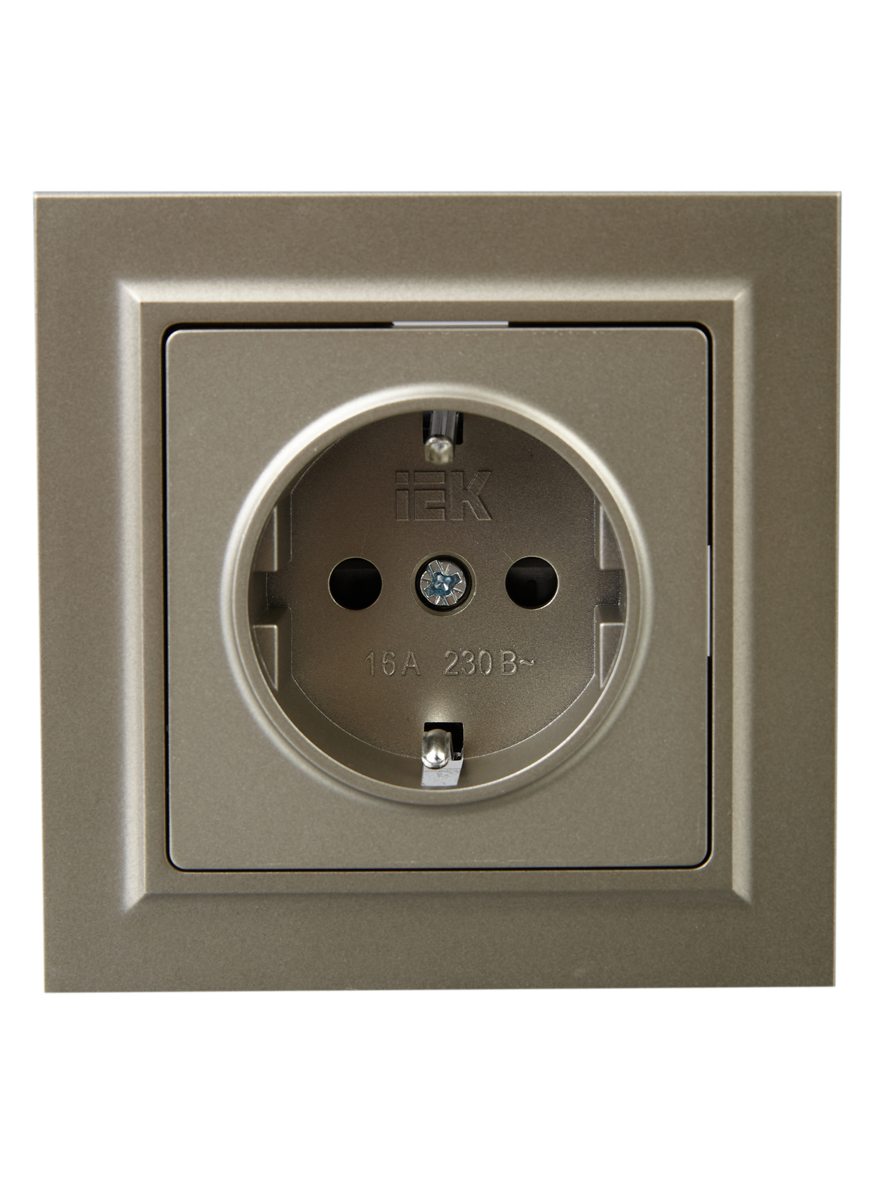 BRITE Розетка 1-местная с заземлением с защитными шторками 16А в сборе РСР14-1-0-БрШ шампань IEK