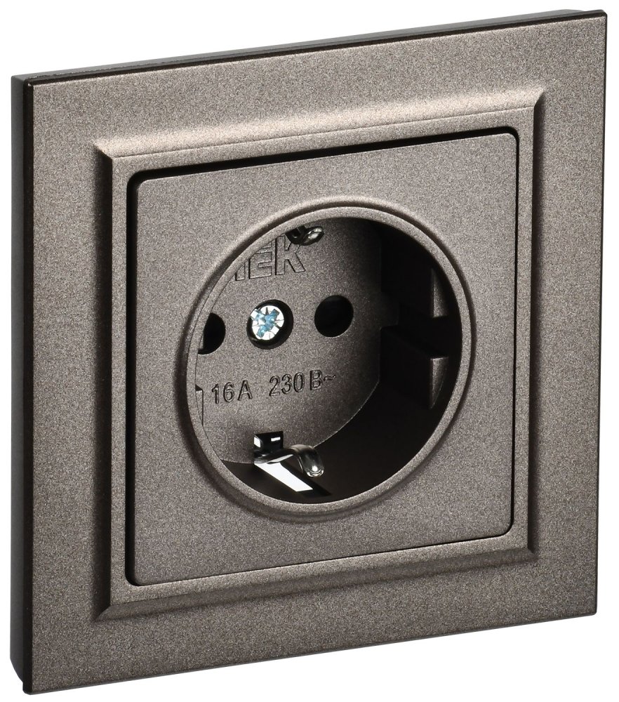 BRITE Розетка 1-местная с заземлением с защитными шторками 16А в сборе РСР14-1-0-БрТБ темная бронза IEK