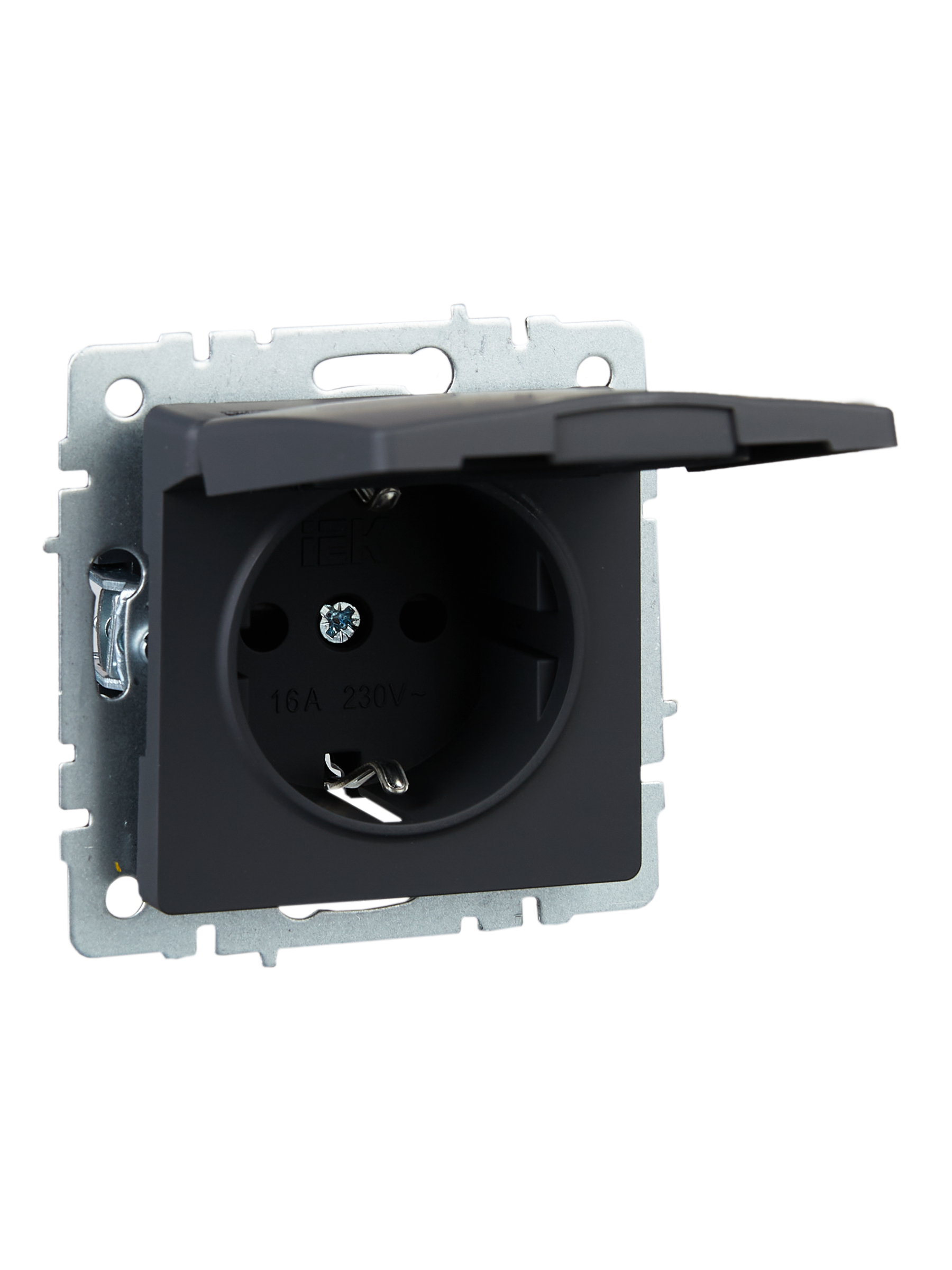 BRITE Розетка 1-местная с заземлением с защитными шторками и крышкой 16А IP20 РСбш10-3-БрГ графит IEK