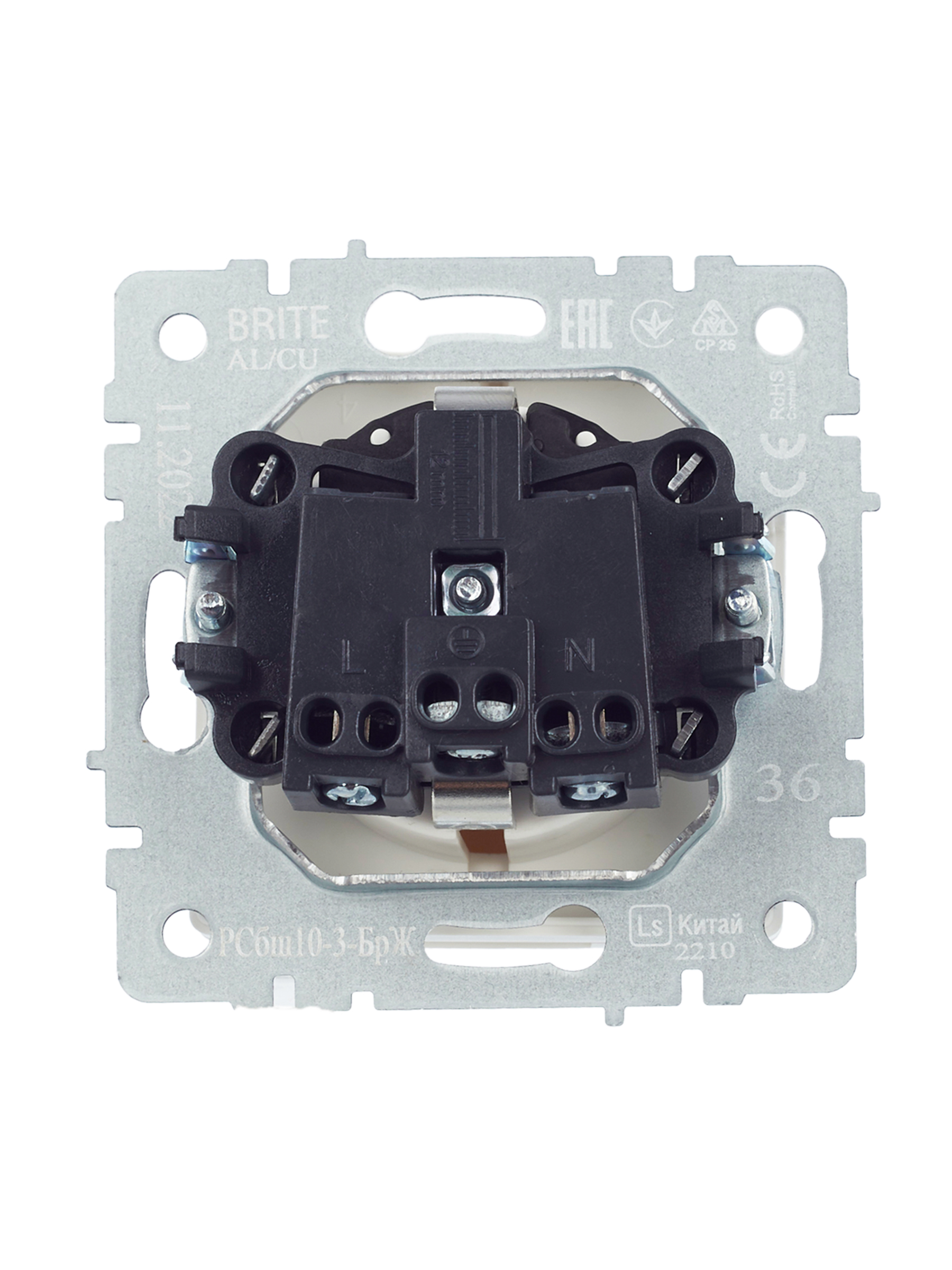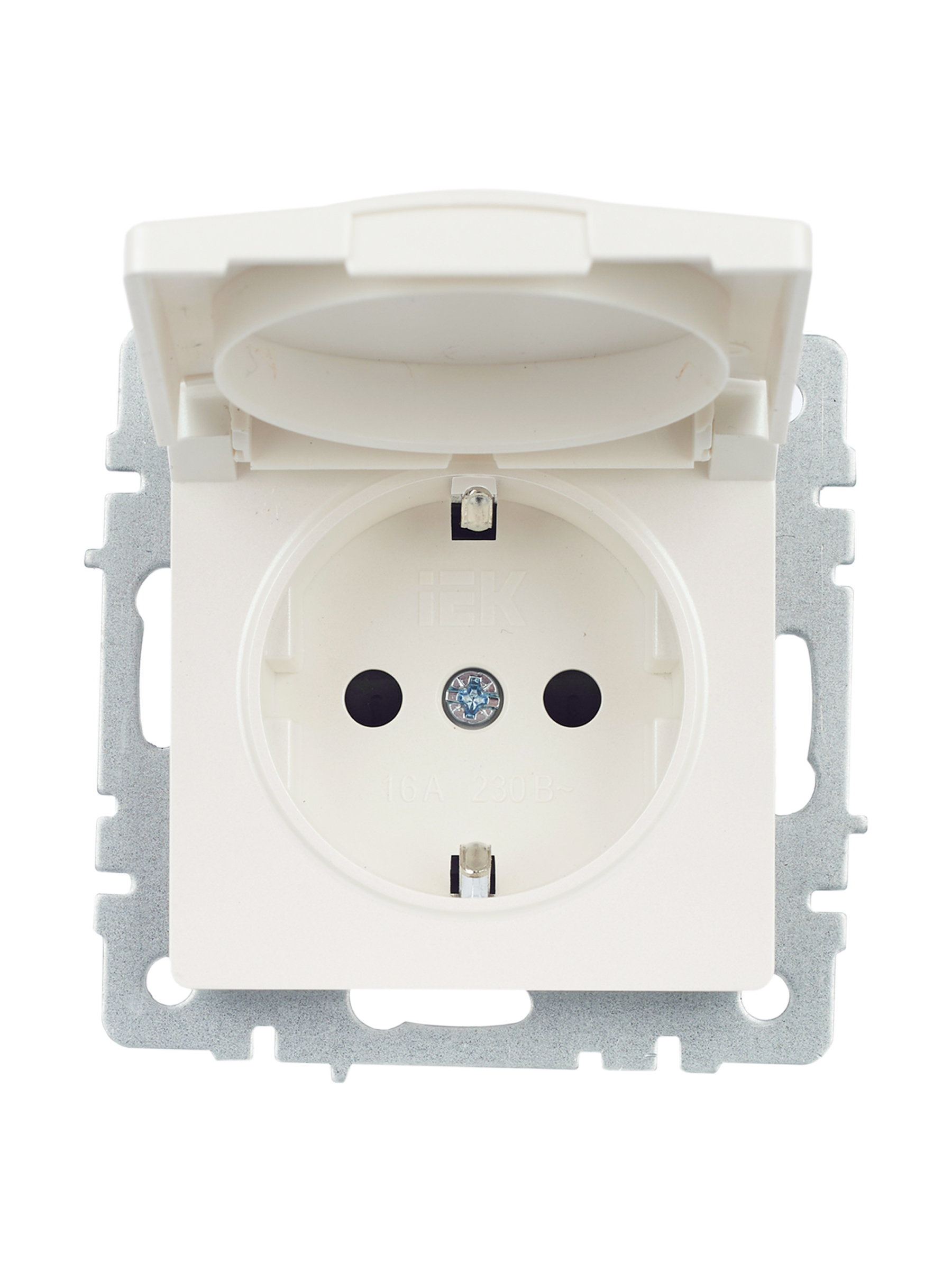BRITE Розетка 1-местная с заземлением с защитными шторками и крышкой 16А IP20 РСбш10-3-БрЖ жемчуг IEK