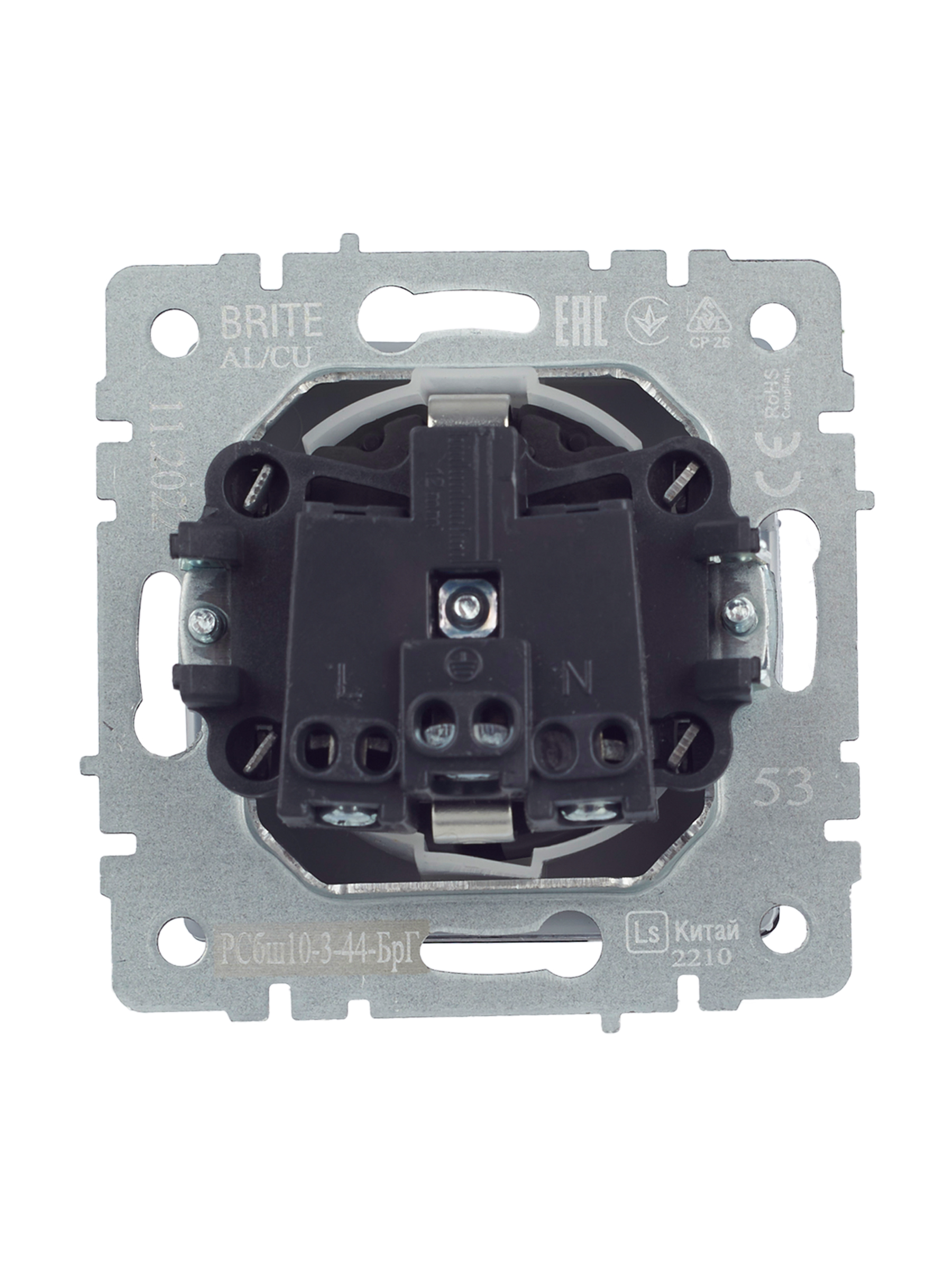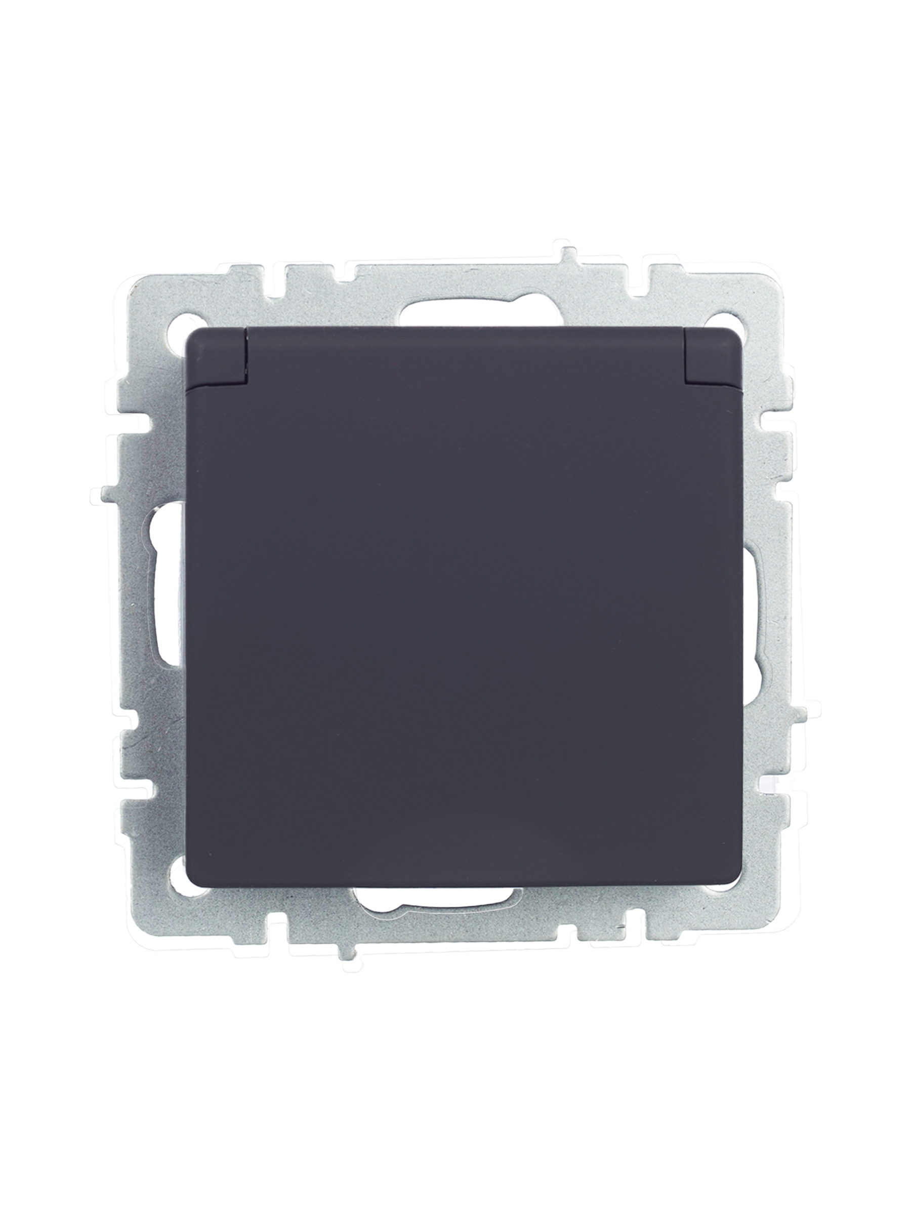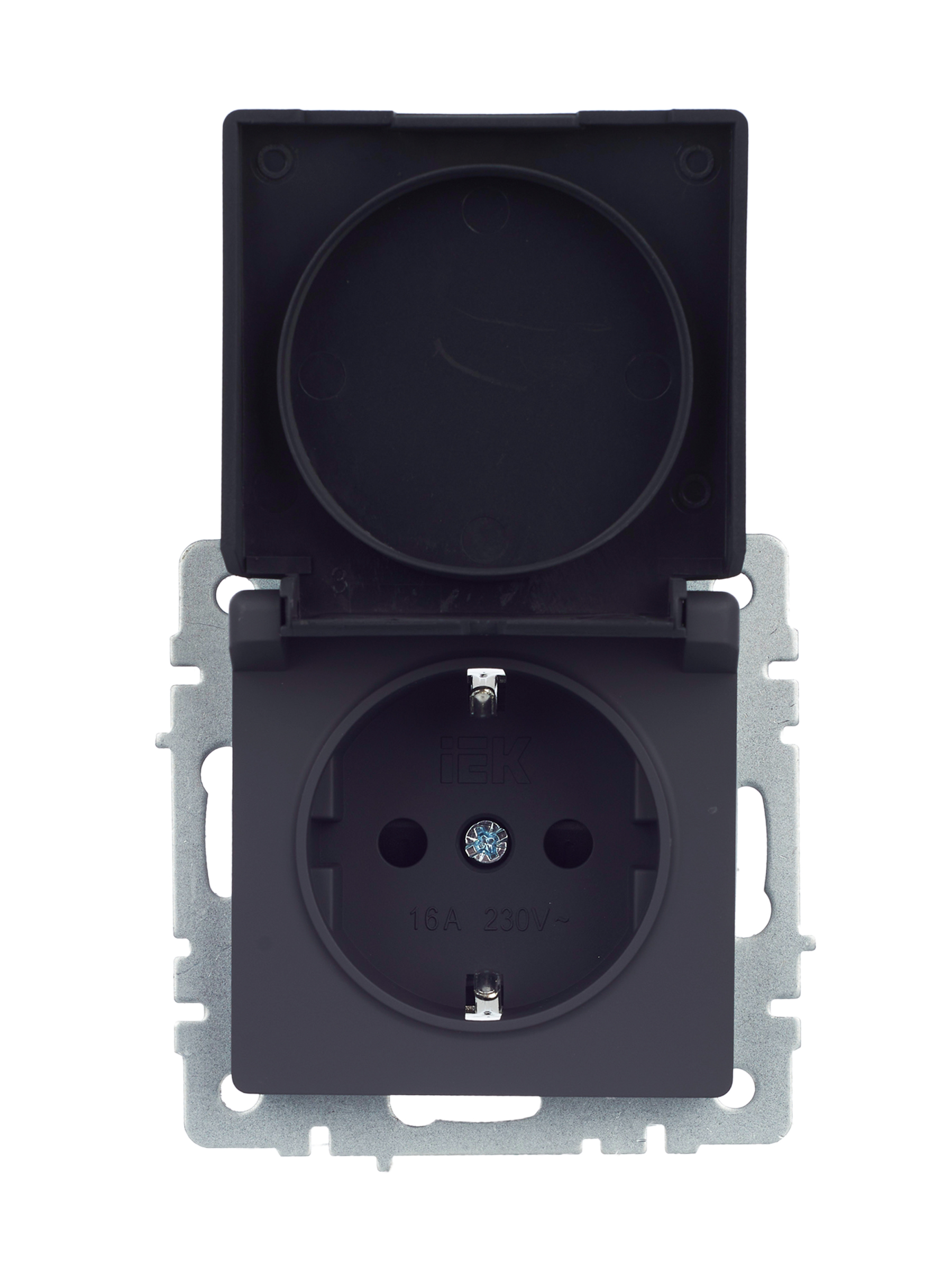 BRITE Розетка 1-местная с заземлением с защитными шторками и крышкой 16А IP44 РСбш10-3-44-БрГ графит IEK