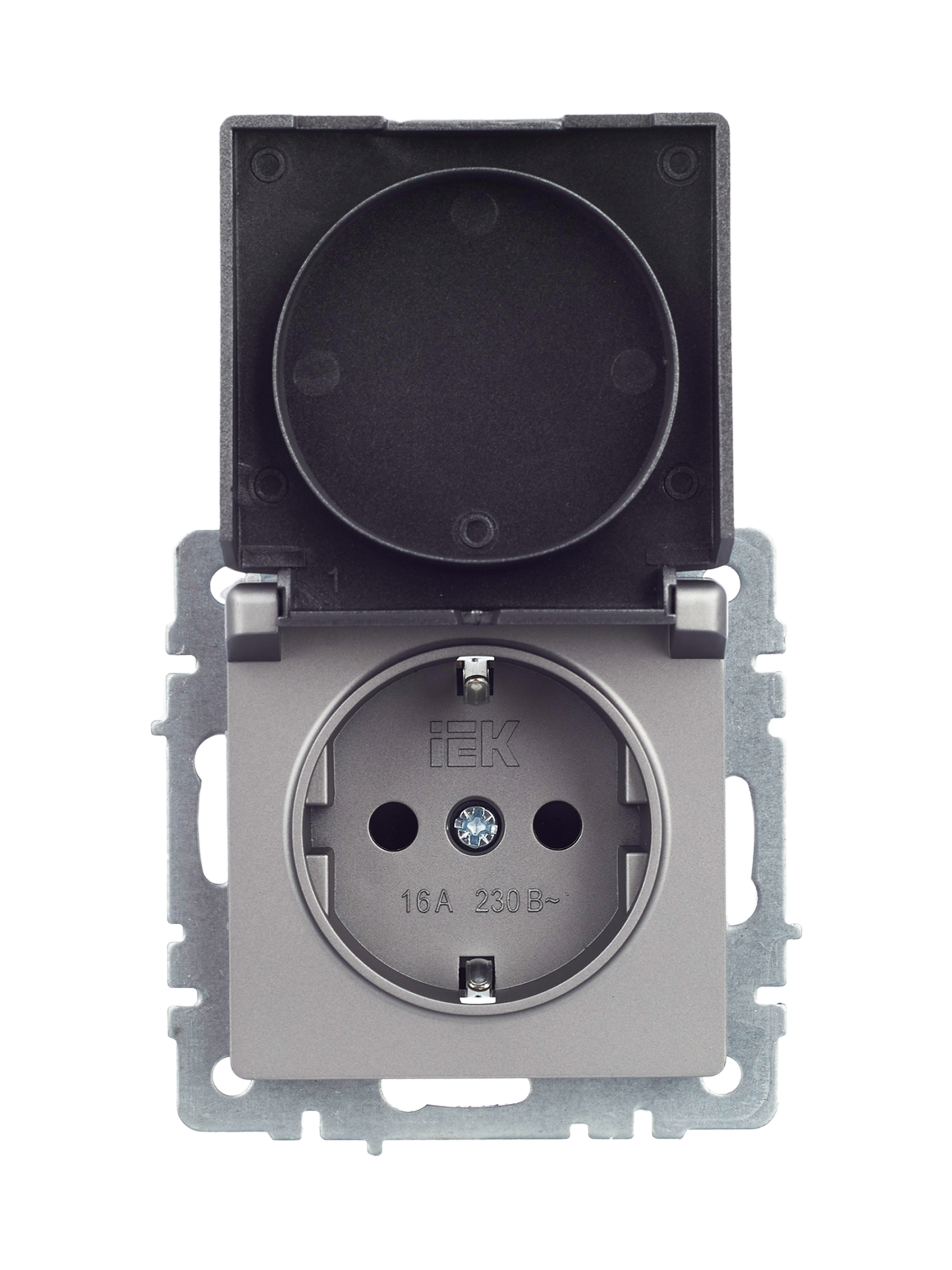 BRITE Розетка 1-местная с заземлением с защитными шторками и крышкой 16А IP44 РСбш10-3-44-БрС сталь IEK