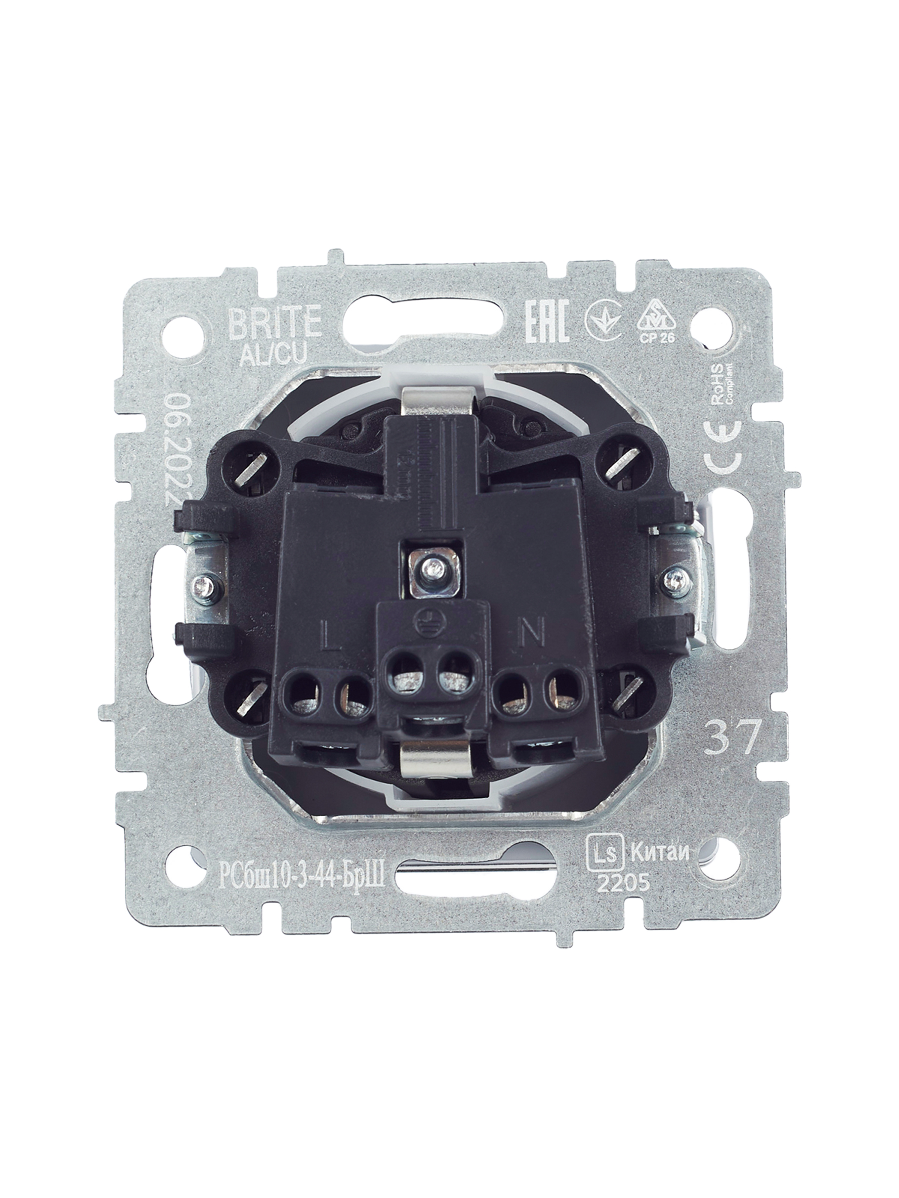 BRITE Розетка 1-местная с заземлением с защитными шторками и крышкой 16А IP44 РСбш10-3-44-БрШ шампань IEK