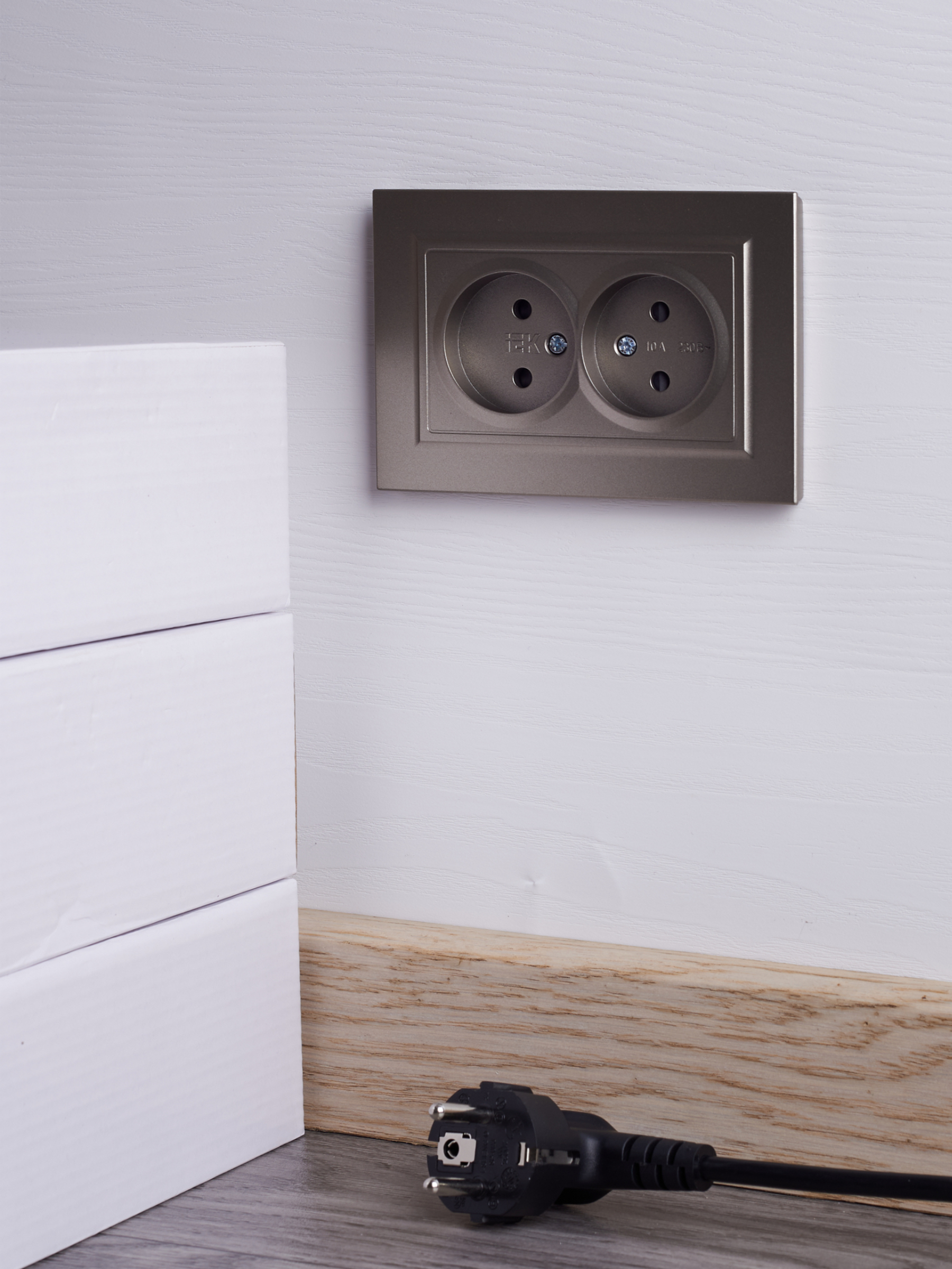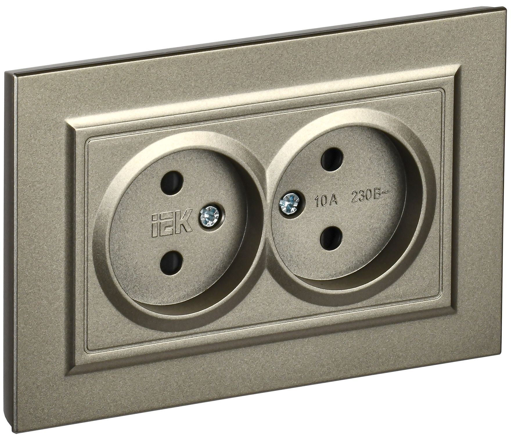 BRITE Розетка 2-местная без заземления с защитными шторками 10А в сборе РСш12-2-БрШ шампань IEK