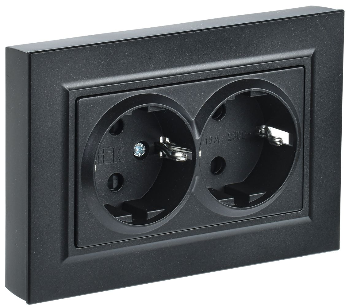 BRITE Розетка 2-местная с заземлением без защитных шторок 16А в сборе РС12-3-БрЧ черный IEK