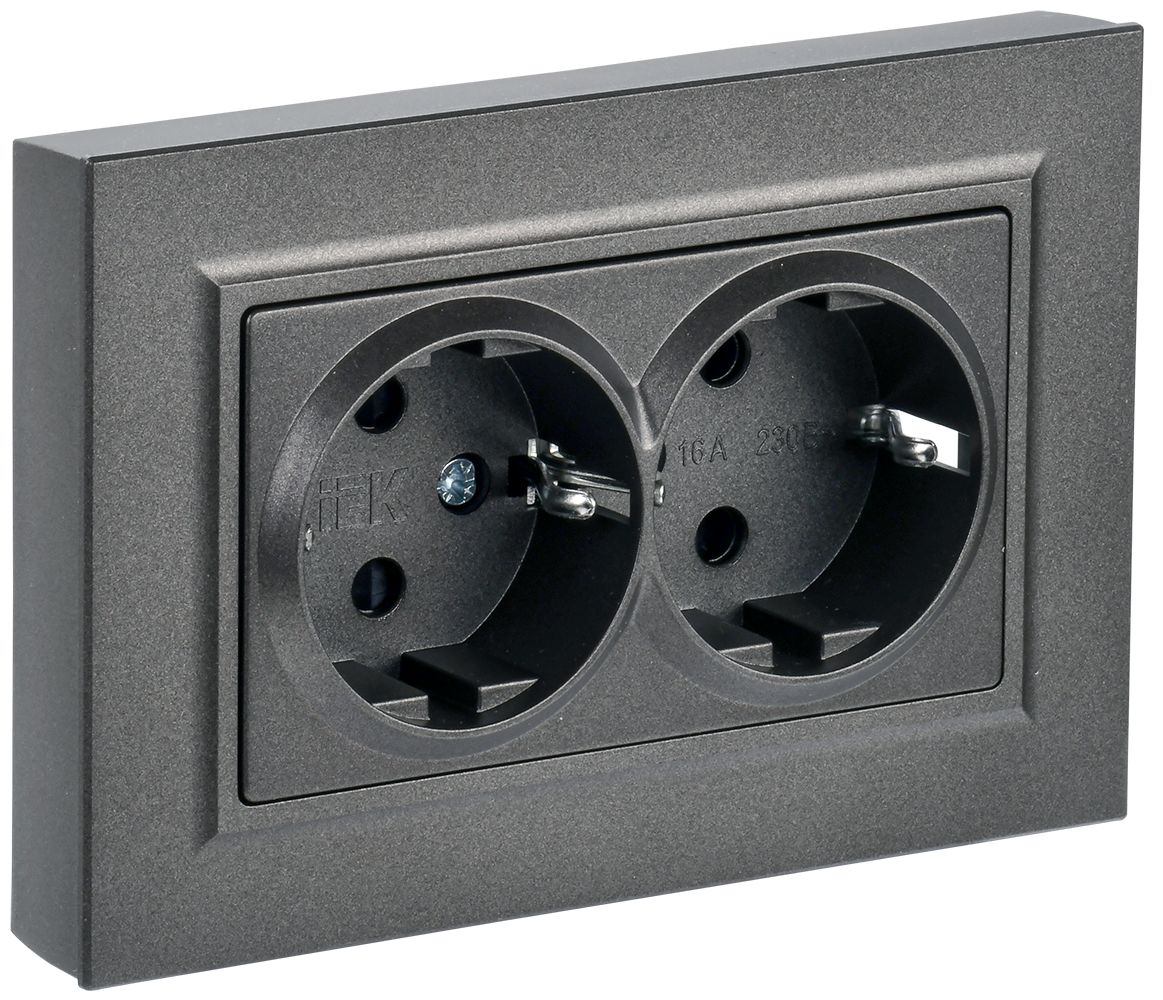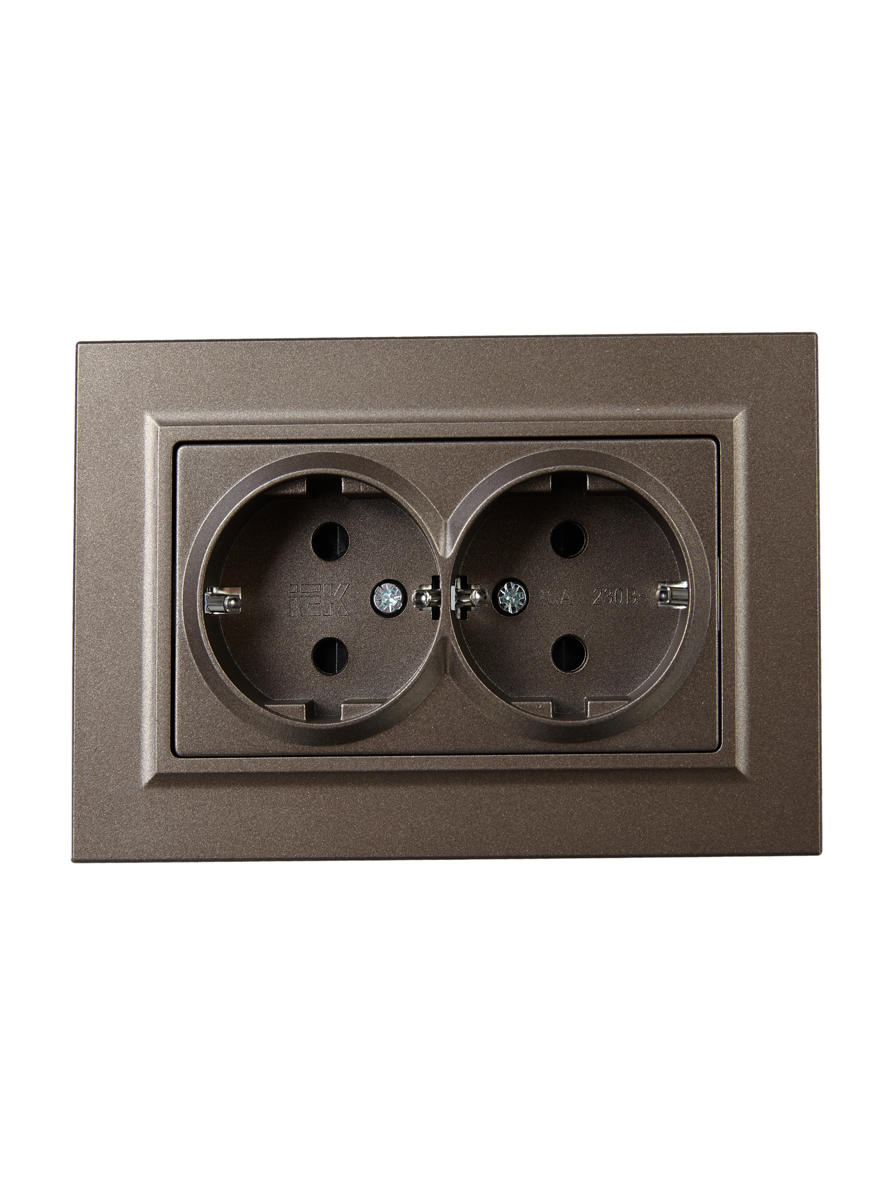 BRITE Розетка 2-местная с заземлением с защитными шторками 16А в сборе РСш12-3-БрТБ темная бронза IEK