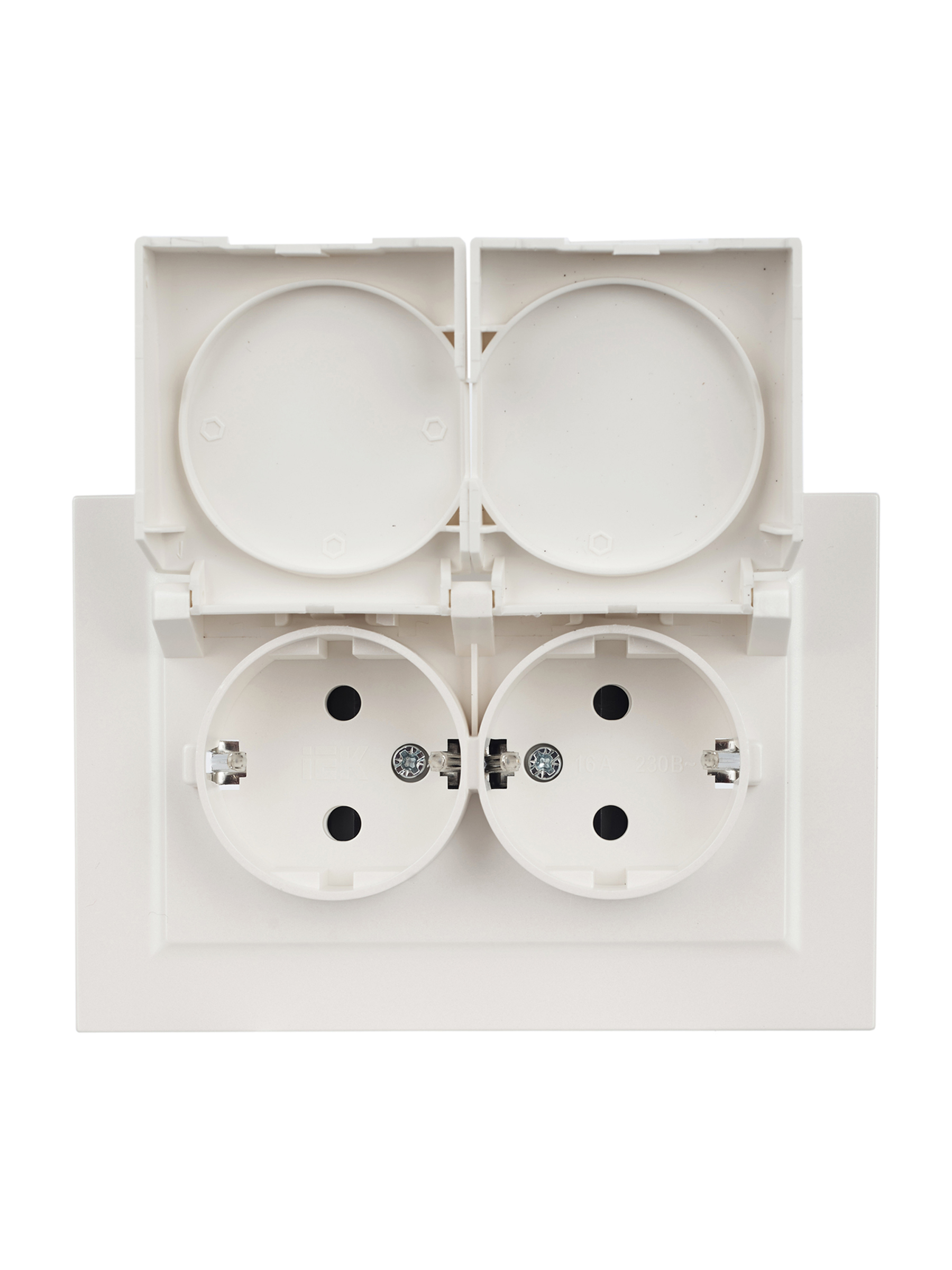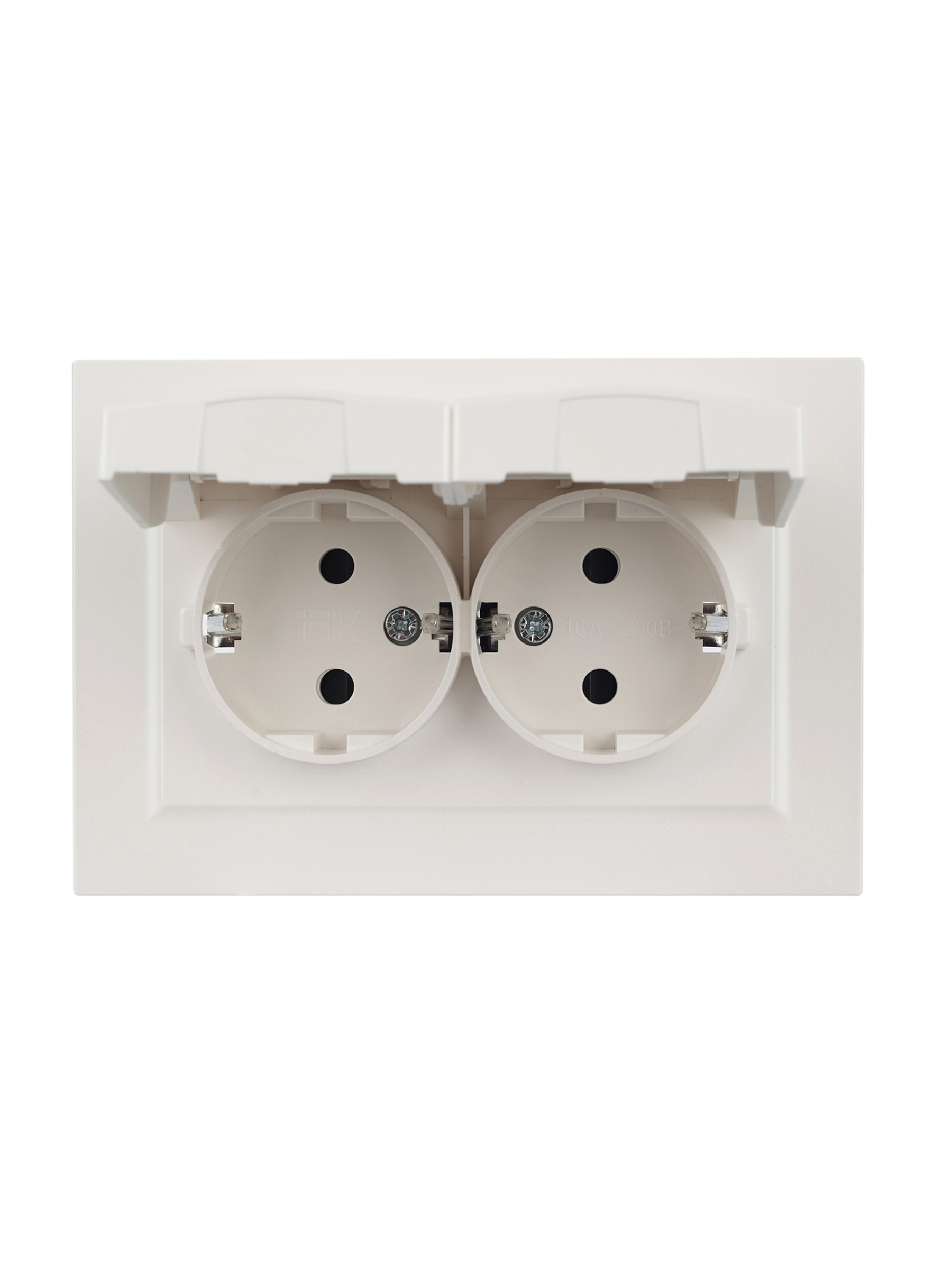 BRITE Розетка 2-местная с заземлением с защитными шторками и крышкой 16А в сборе IP44 РСбш12-3-44-БрЖ жемчуг IEK