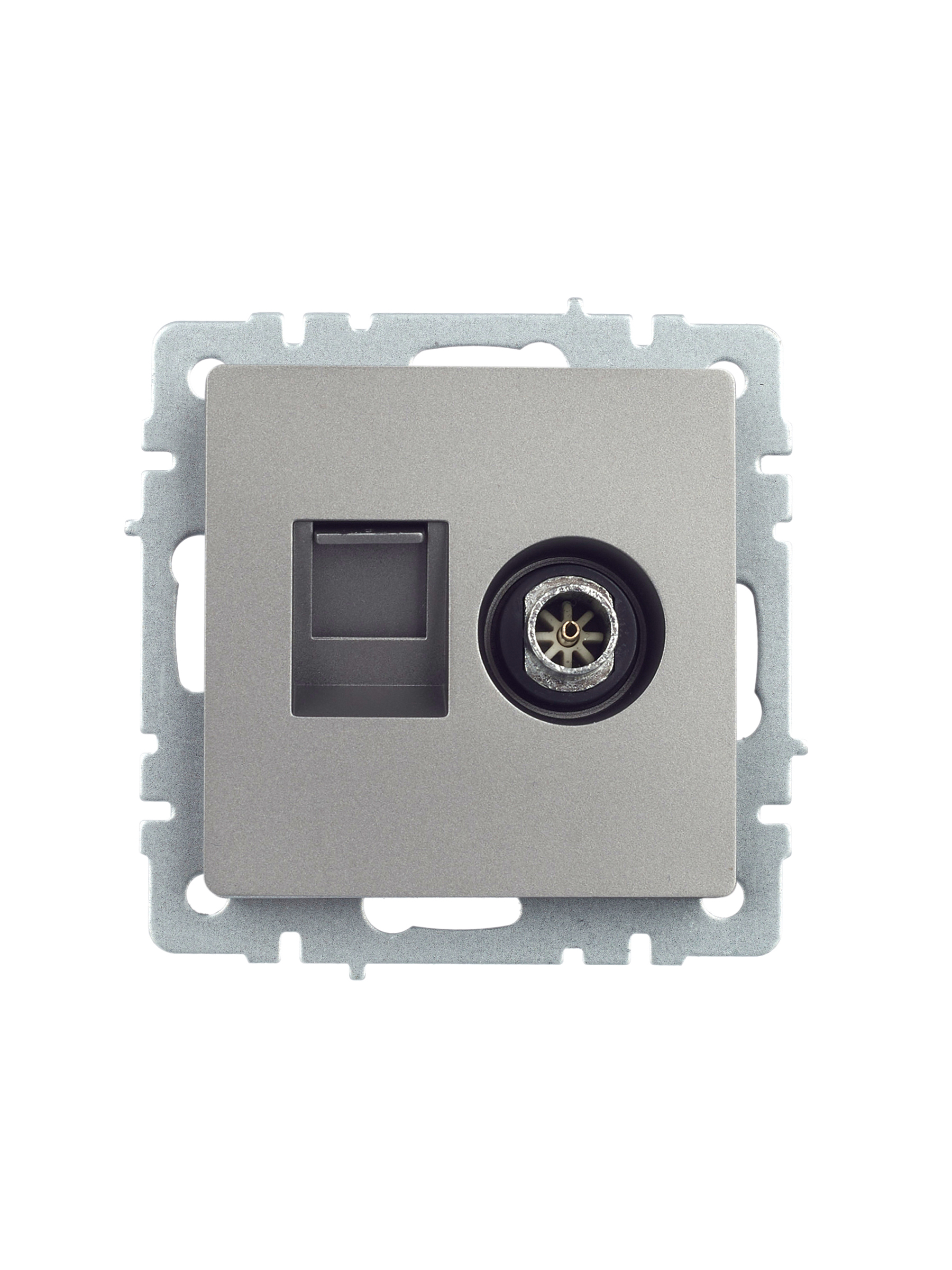 BRITE Розетка двойная TV+RJ45 кат.5E РТВ/РК12-БрС сталь IEK