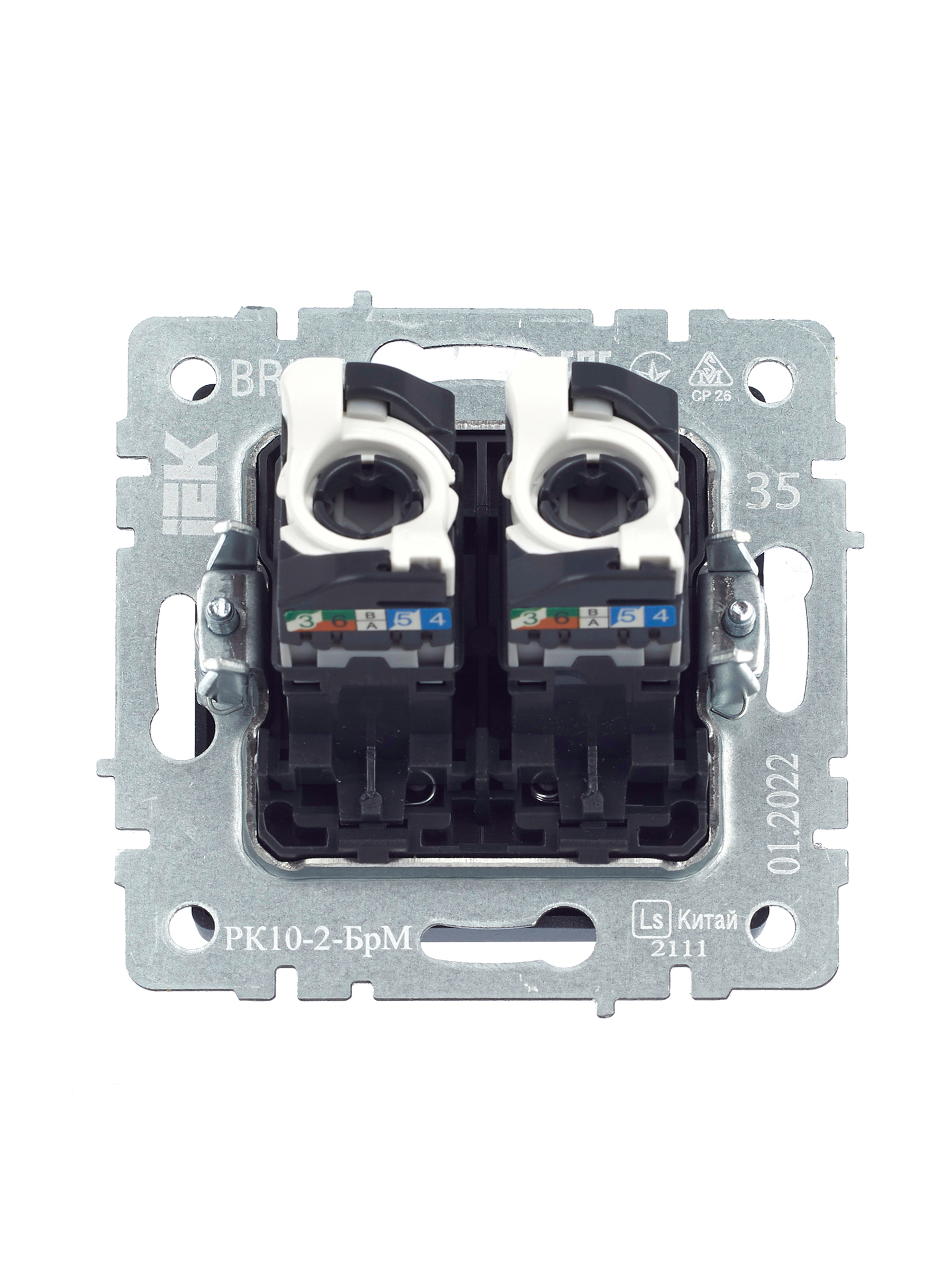 BRITE Розетка компьютерная двойная RJ45 кат.5E РК10-2-БрМ маренго IEK