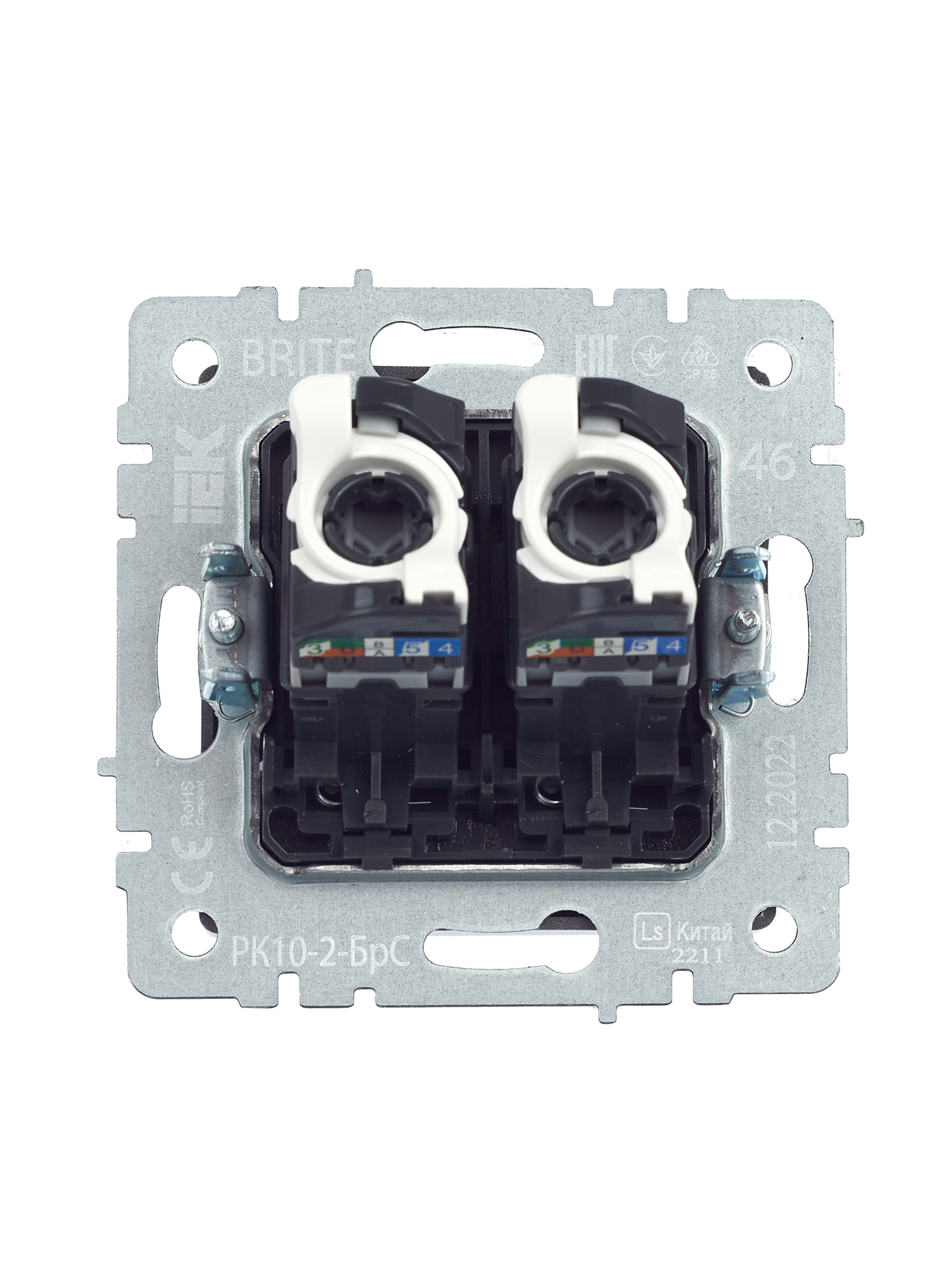 BRITE Розетка компьютерная двойная RJ45 кат.5E РК10-2-БрС сталь IEK