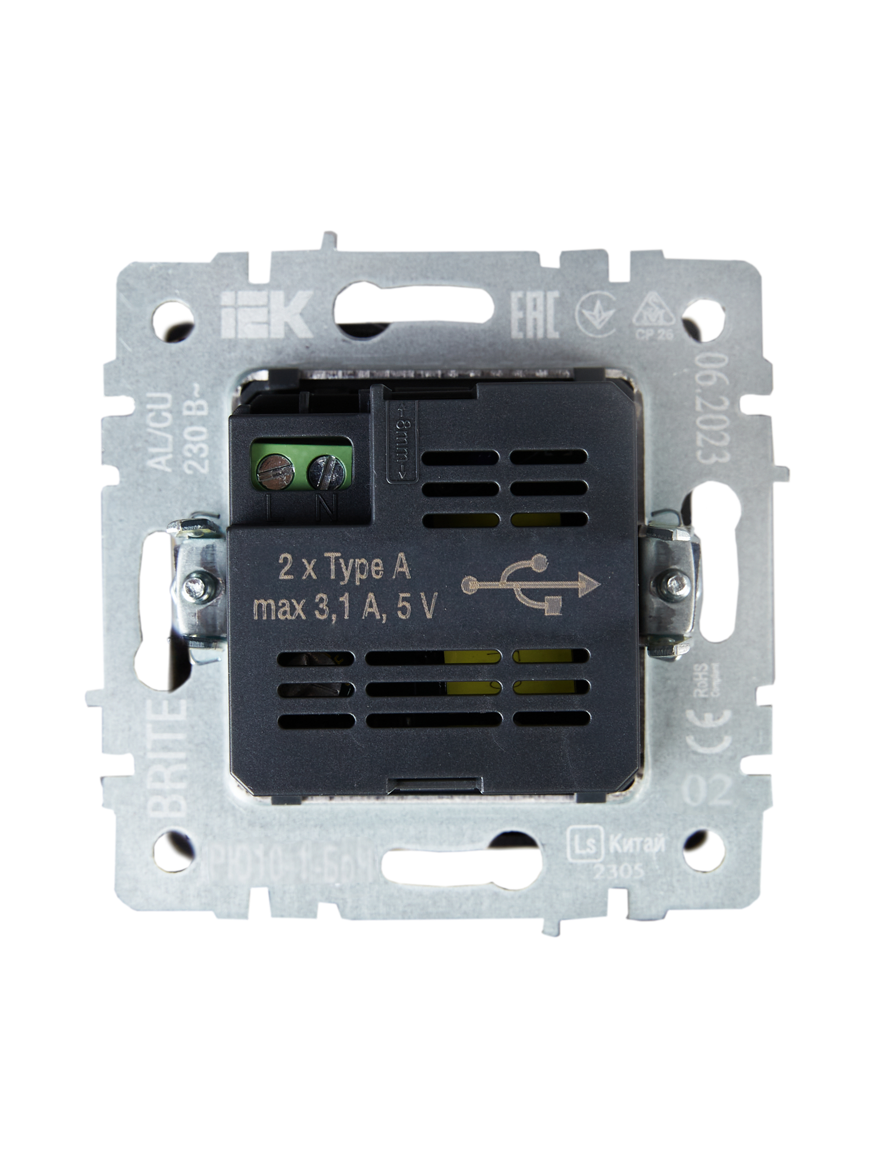 BRITE Розетка USB A+A 5В 3,1А РЮ10-1-БрЧ черный IEK