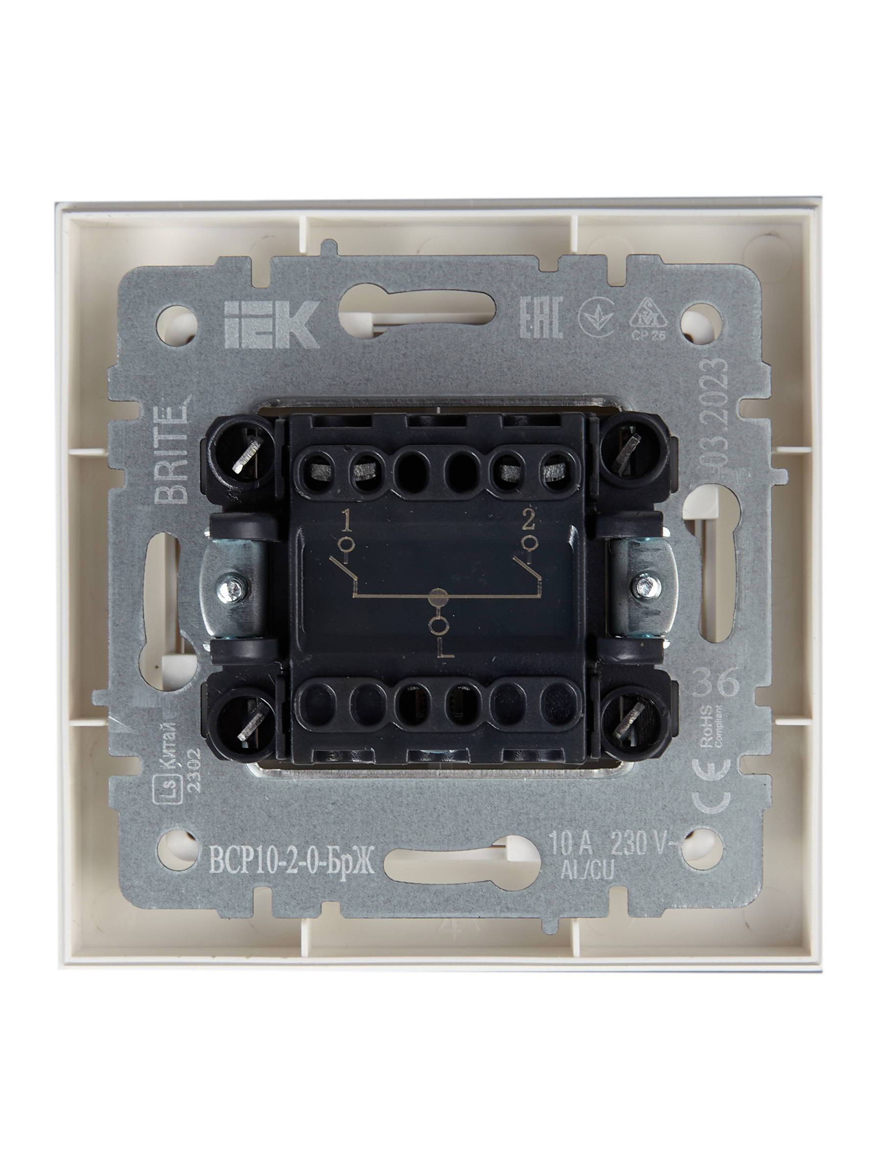 BRITE Выключатель 2-клавишный 10А в сборе ВСР10-2-0-БрЖ жемчуг IEK
