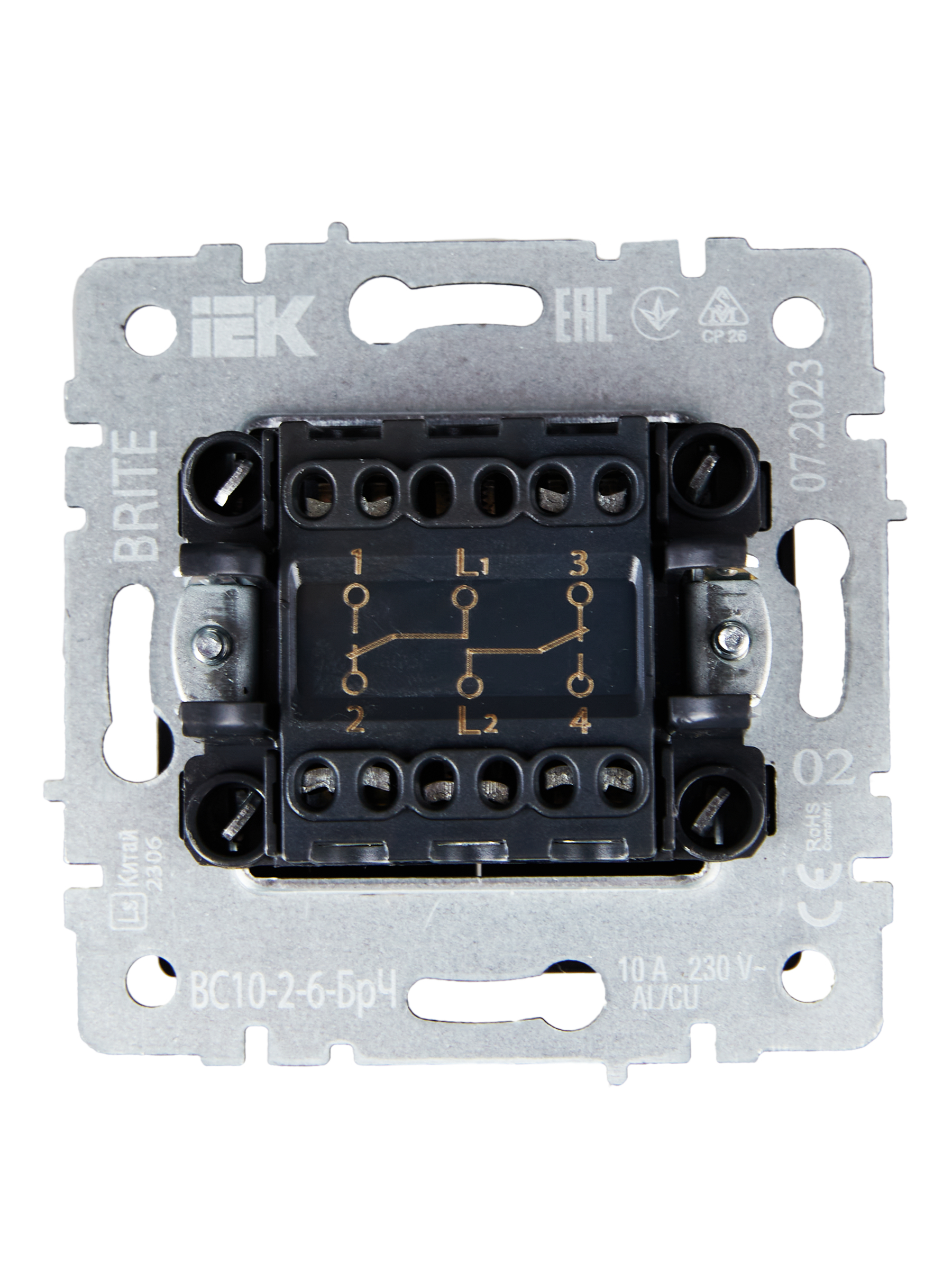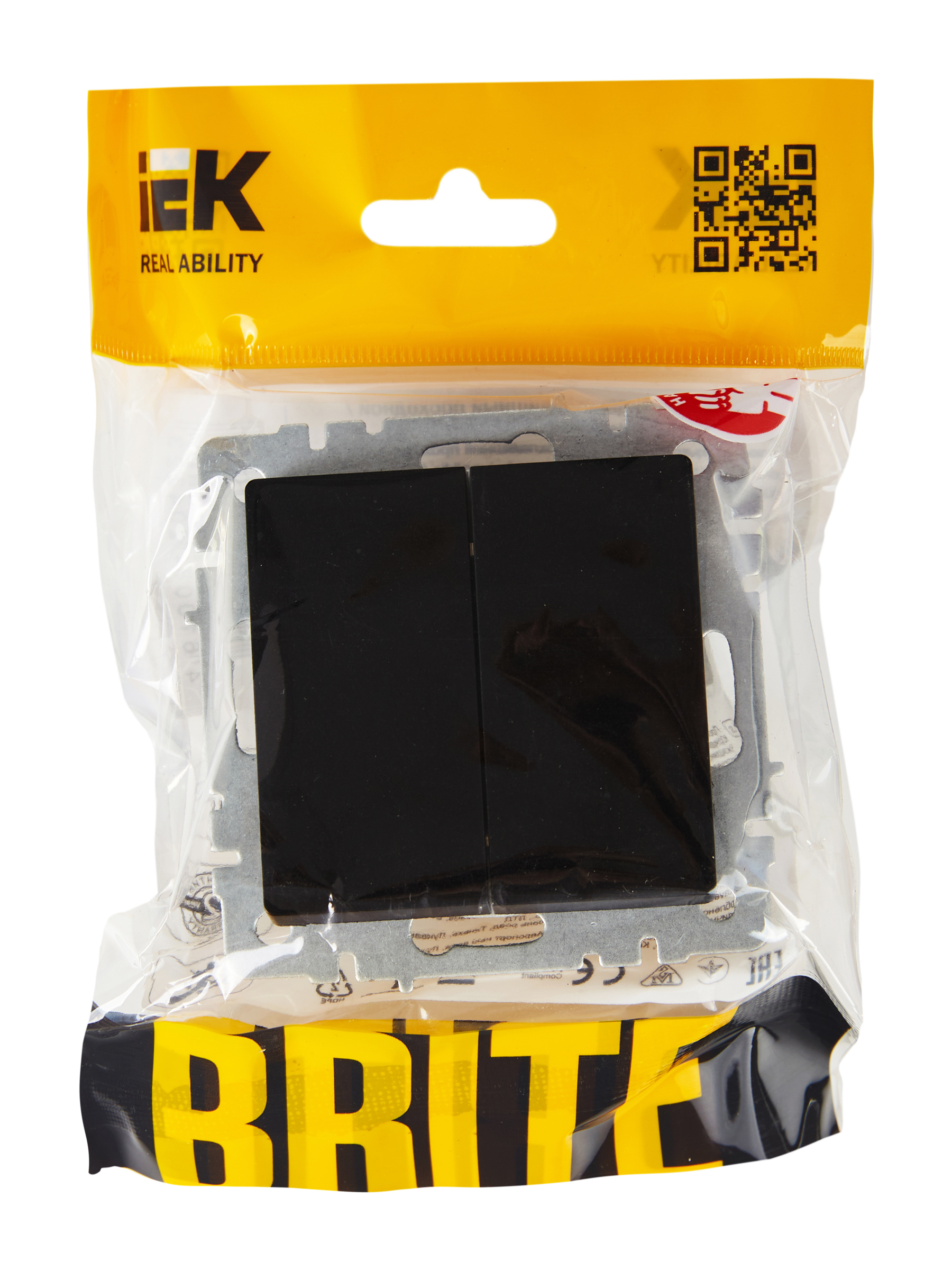 BRITE Выключатель 2-клавишный проходной 10А ВС10-2-6-БрЧ черный IEK